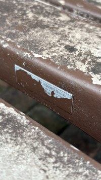写真右=ベンチの端には「日本万国博覧会協会」の文字が確認できます。