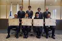 本学の発展のために多額のご寄付をいただいた中島 篤巳氏、山路 孟氏、安田 千穗子氏、吉泉産業株式会社に対して、紺綬褒章が授与されました。これを受け、7月11日に本学において紺綬褒章の伝達式と懇談を行いました。紺綬褒章は、公益のために多額の私財を寄付した方に授与されるものです。