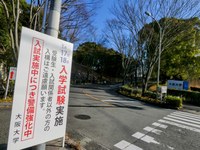 ▲写真左=西門には「大学入学共通テスト入学試験実施」の看板が設置されていました。この時期になると、大阪大学を目指して勉強に励んでいた受験時代を思い出される方も多いのではないでしょうか。