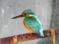 ▲写真左=水遠池のカワセミ(メス)。「水辺の宝石」と呼ばれるのも納得の美しさ。