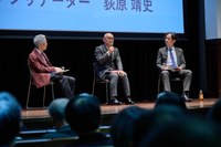 ▲写真右=対談の様子(左から荻原氏、釈先生、宮下准教授)