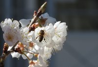 ▲写真右=ミツバチも1本の木に4匹ほど集まり、足には花粉団子を作っていました。花々の開花とともに、これからは虫たちも活発になります。