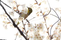▲写真左=白い桜の蜜を吸いに来たメジロ。甘党のメジロは心なしか嬉しそうです。