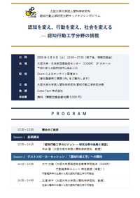 - 認知行動工学研究分野キックオフシンポジウム「認知を変え、行動を変え、社会を変える ─ 認知行動工学分野の挑戦」(5/9)