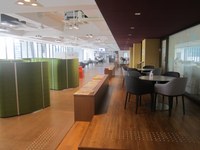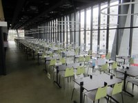 ▲5階の学生交流スペースもひっそりしていて、向こう側に学生が1組、意見交換しているだけでした