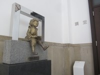 ▲ブロンズ像(2010年制作)の「まちかね童子」は以前、豊中キャンパスの石橋口から入ってすぐの屋外で池に臨んでいましたが、今は大学会館4階の講堂の入口にちょこんといます。会館には自由に入れますので、会いに行ってみてください。