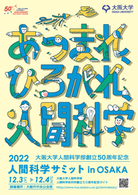 ◆人間科学部創立50周年記念行事「人間科学サミット in OSAKA:あつまれ、ひろがれ、人間科学」(12/3~4) 大阪大学人間科学部は日本で初めての人間科学部として設立され、2022年に創立50周年を迎えました。これを記念し、「人間科学部」の過去をふりかえり、現在を紹介し、未来を考える総合イベントを、大阪の歴史ある建築物である大阪市中央公会堂で開催します。全国の大学から人間科学部の代表が集まる「全国人間科学系部局連携ネットワーク」の設立記念式典も行われます。 人間科学系学部への進学を考える高校生(各大学の入学案内資料が配布されます)から、人間科学部を卒業した社会人のみなさん(どこの人間科学部でも)まで楽しめるイベントとなっています。ぜひお気軽にお立ち寄りください。 〇開催期間:12月3日(土)・4日(日) 〇会場:大阪市中央公会堂(大阪市北区中之島1-1-27) 〇申込方法:こちらから事前にお申込みください。 〇参加費:無料 ⇒詳細はこちら