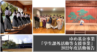 ●「学生課外活動等支援事業」2022年度活動報告 課外活動団体への高額物品援助を行っており、2022年度は12団体に支援を行いました。 [メッセージ紹介団体] 〇喜多流能楽研究会 〇弓道部 ⇒メッセージはこちら