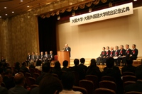【4】阪大タイムスリップ ◆ 互いの強みを生かしあって教育、研究、社会貢献 来年は外大創設100周年 ――――<13年前>大阪大学・大阪外国語大学 統合 13年前の2007年10月1日、大阪大学と大阪外国語大学が統合しました。大学としての文化も組織形態も異なる二つの大学が統合したことは、両大学にとって歴史的な大事業でした。統合後、両大学の強みを生かした様々な取り組みが行われ、教育、研究、社会貢献を展開しています。 ⇒当時の式典等の様子はこちら